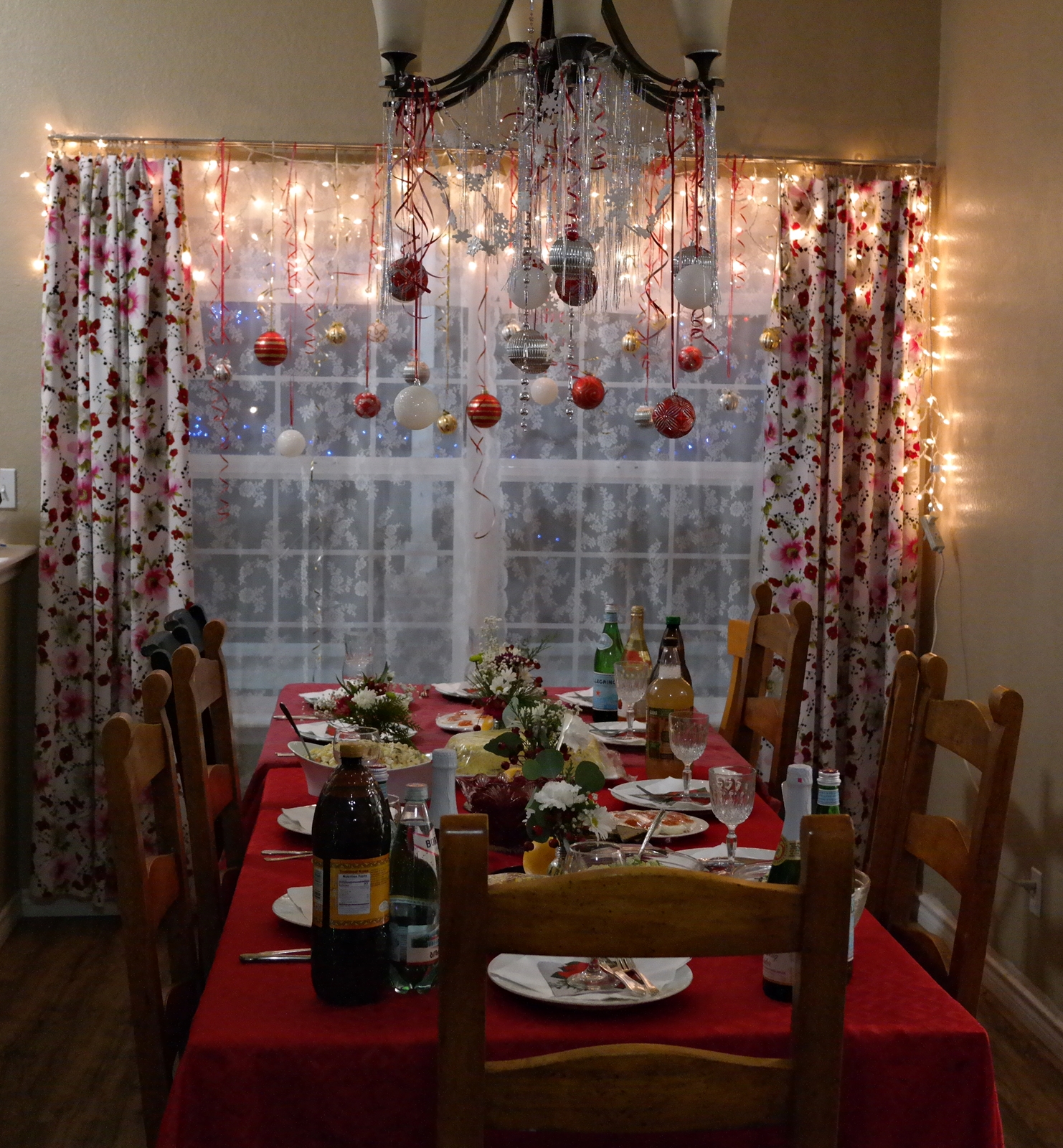 Нас было 8 взрослых. Наши дети. Гостевые дети - сколько именно не считала, но, думаю, не меньше, чем наших. Соседский ребенок-американец, который очень любит русскую еду, но никогда до этого Новый год не праздновал. И соседская собачонка, которая сопровождала меня не на одной прогулке и, по-видимому, учуяв запах мяса, решила, что также обладает правом на празднование Нового года.